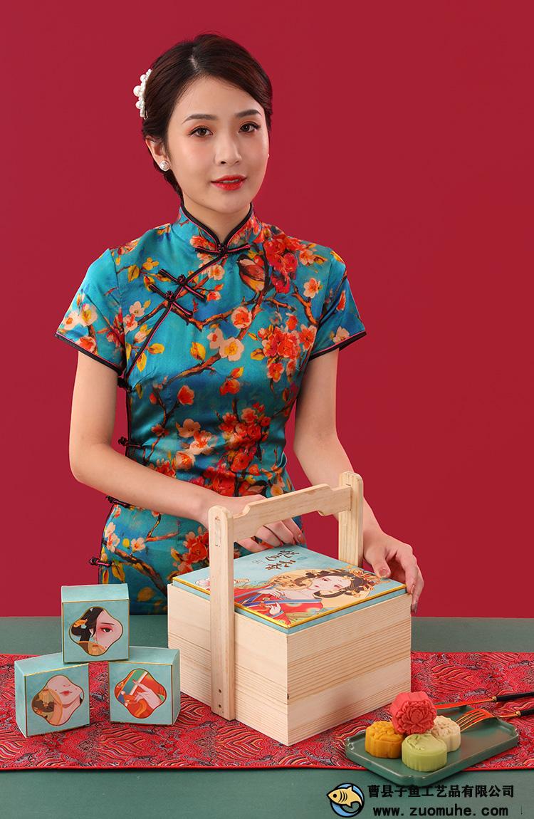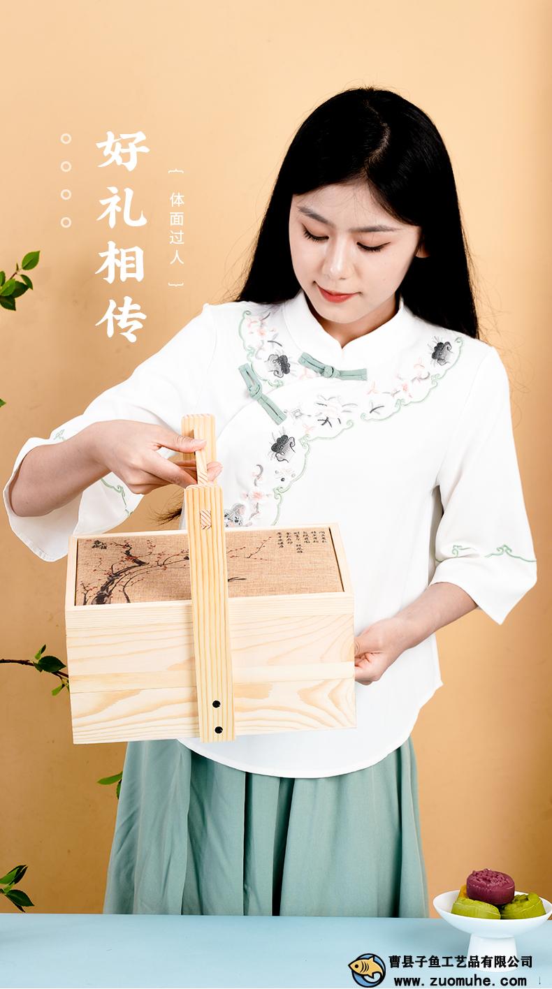 定做木制中秋月餅禮盒雙層提籃